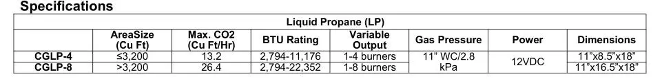 • Based on one air exchange per hour, 1,500 ppm can be obtained per unit in a 4,800 sq. ft. greenhouse or an equivalent 50,000 cu. ft. volume.