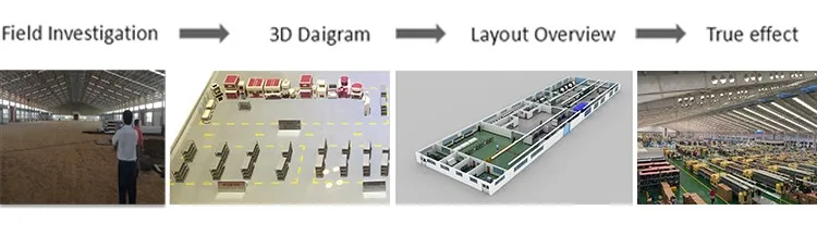 We work with customers for designing the layout, logistic flow and line planning.
