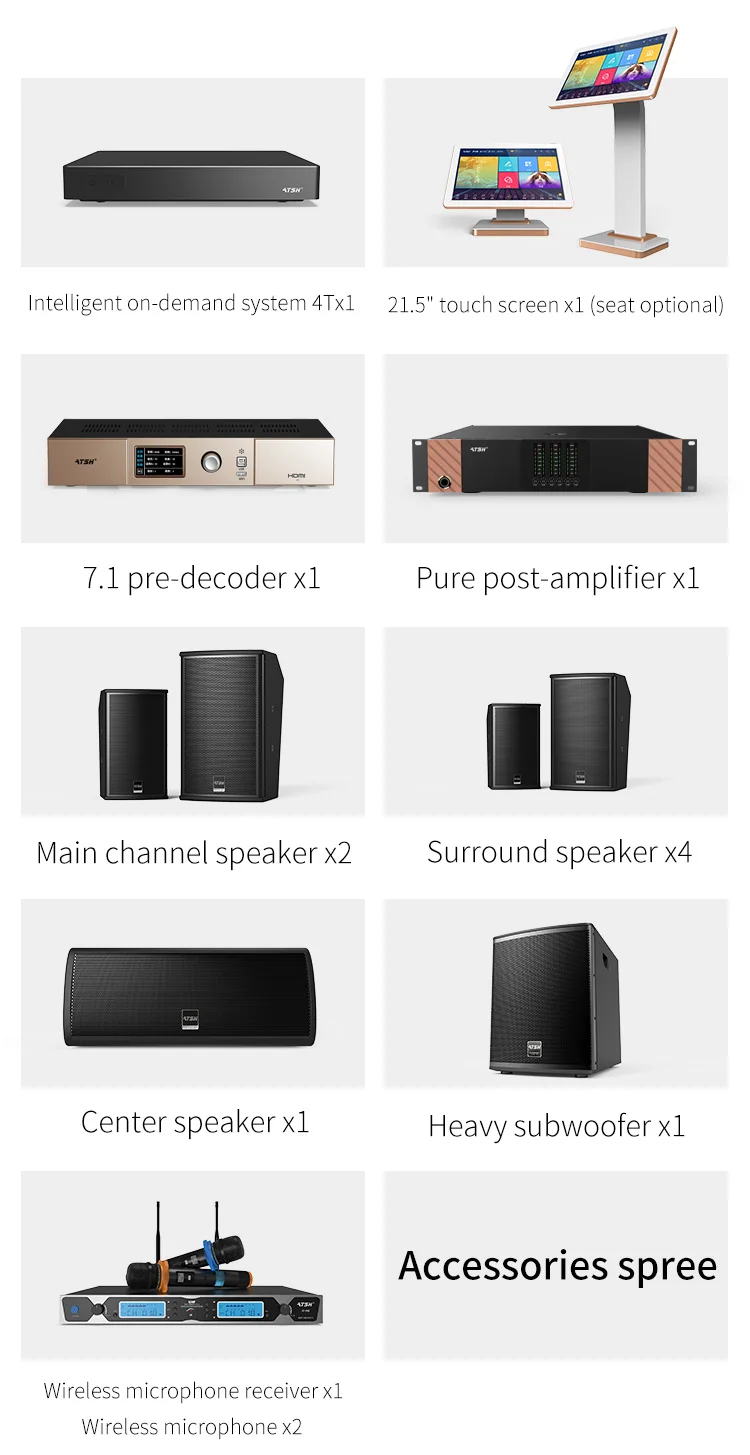 Main channel speaker: 10inch*2 Surrond speaker: 6.5inch*4 Center speaker: 6.5inch*1