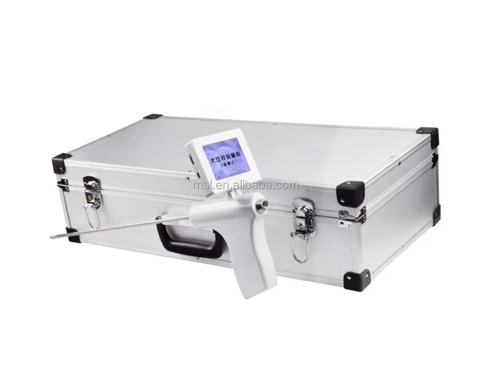 The canine visual insemination gun consists of an endoscope, a display screen, and a camera.