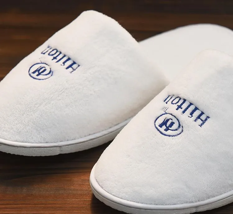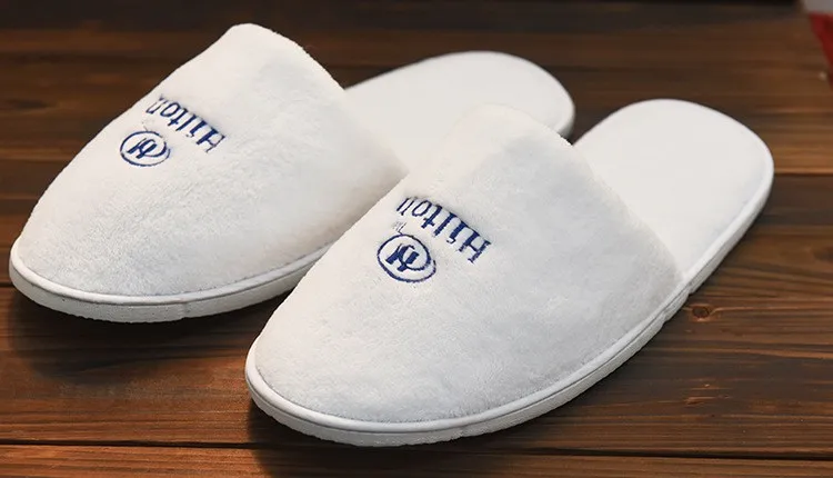 Product Name | Wholesale Custom Logo White Coral Fleece Eva Sole Hotel Disposable Slippers |
