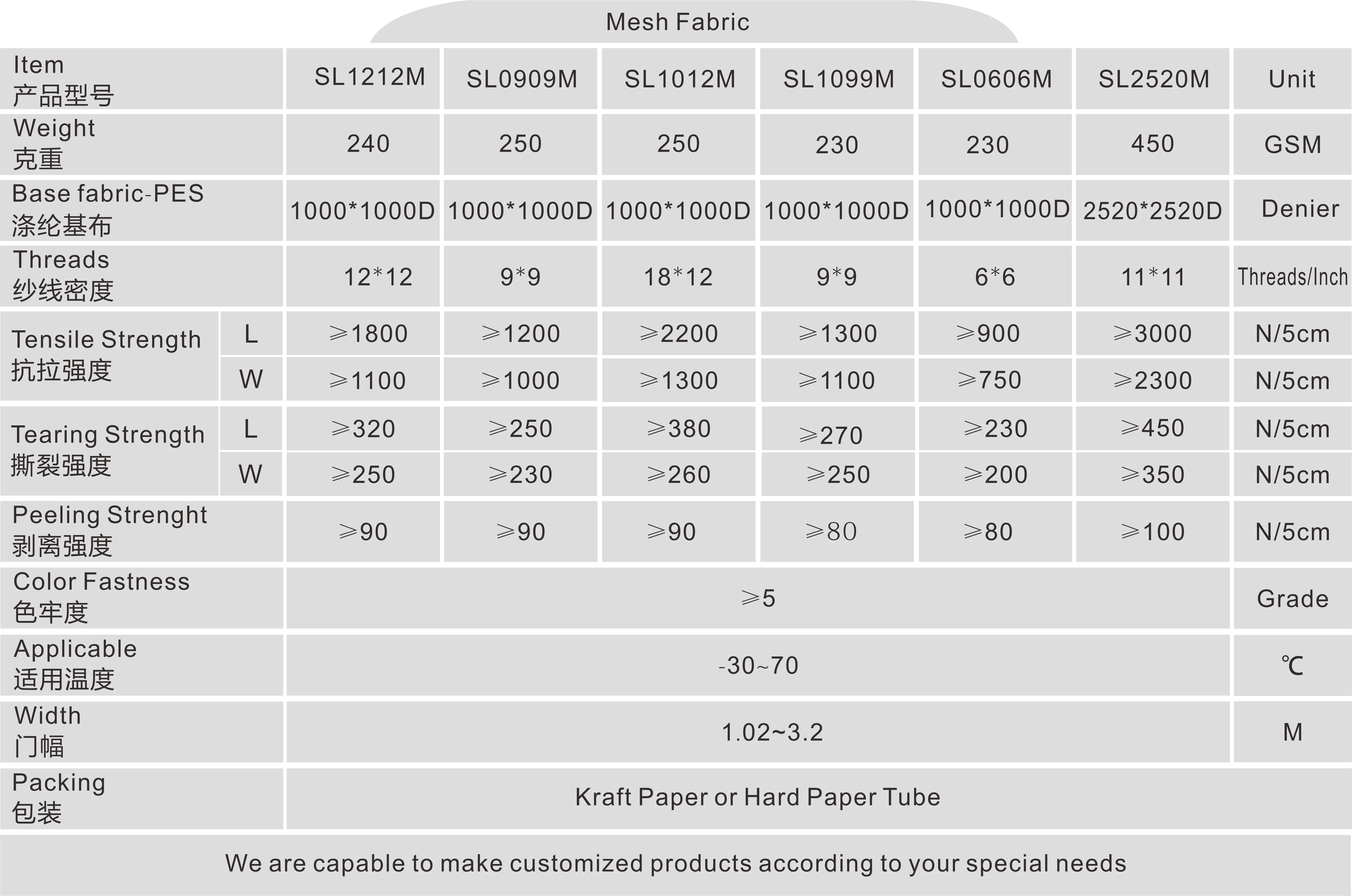 1000*1000 | 12*12 | 250 | 50m/roll | 1m-3.2m |