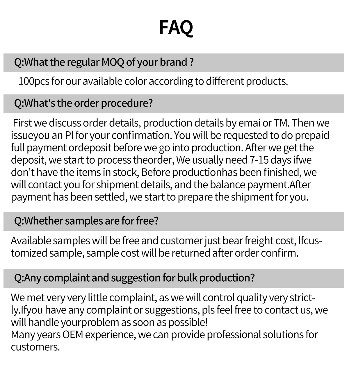 OEM and ODM | Acceptable | ||