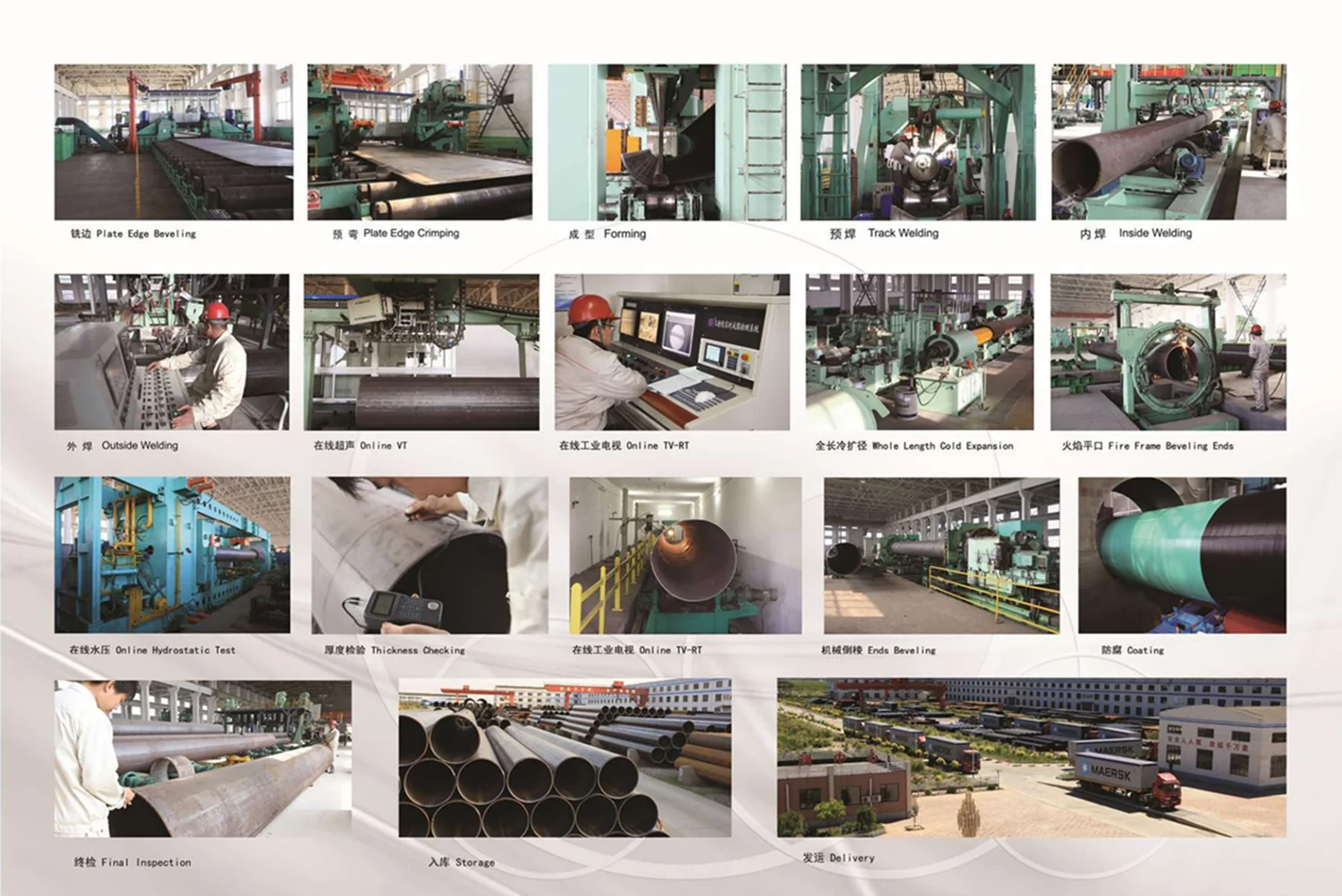 The pipes are mainly used as long distance transportation pipeline for oil, gas, liquid coal etc.on land and offshore. And also can be applied as construction pipes on offshore platform, power station, petrochemistry and city construction etc