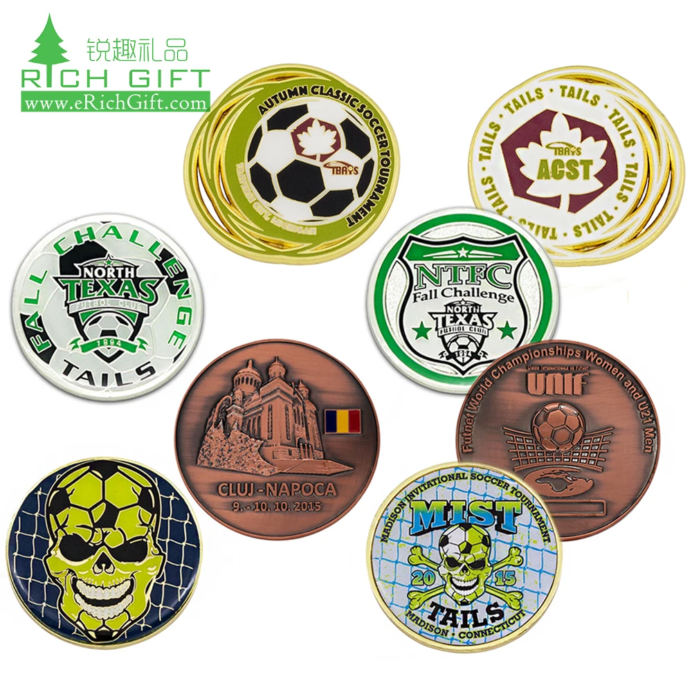 Item | Free sample custom metal zinc alloy printing epoxy insert football / soccer challenge coin for sports tournament | ||||