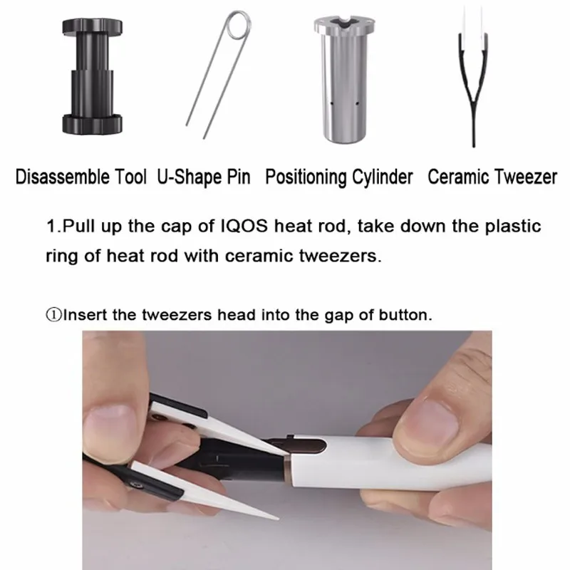 Product Name: ecig assemble tools( U-shape pin,positioning cylinder,ceramic Tweezer) for use with IQOS 2.4 and 3.0