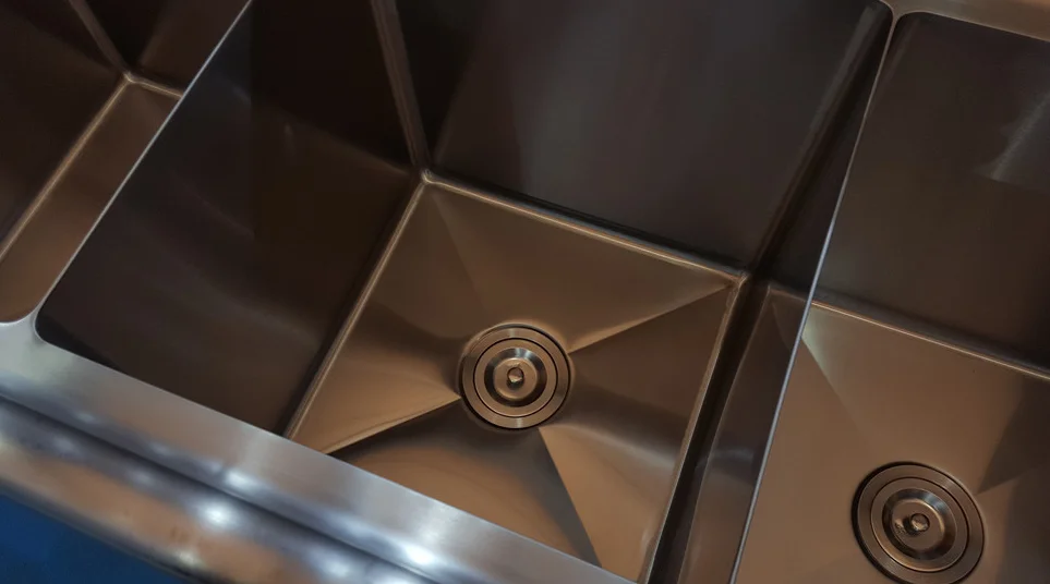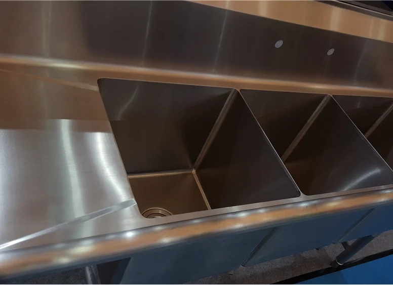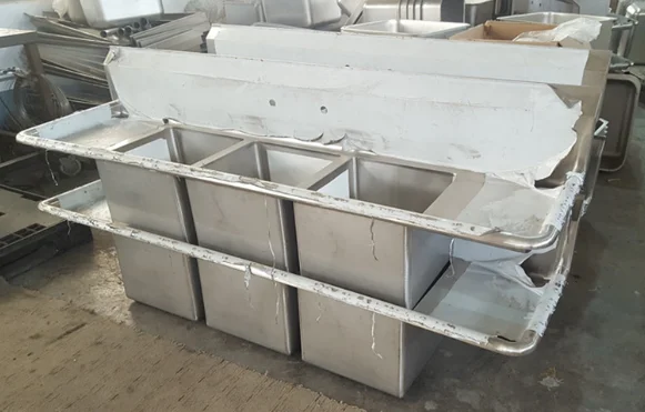 We are Professional Manufacture lies in Shandong province, the north of China. We are strong in making Handmade/welded stainless steel sinks, work tables, cabinets, shelves, trolley and carts.