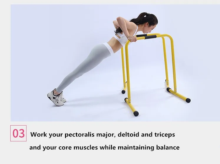 The Parallel Bars are simple, portable, yet multi-purpose and versatile piece of strength training equipment that works