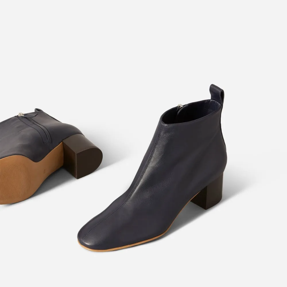 MANRINO-0501 Ladies Latest Supply Wooden Heel Almond Toe Shape Women Goat Skin Handmade Luxury Leather Ankle Boots