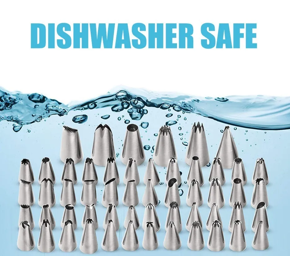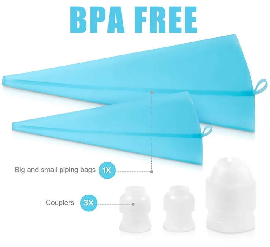 1.PREMIUM MATERIALS: non-toxic and BPA free; 100% food grade stainless steel icing tips, reusable silicone bags and plastic couplers; safe for the health of you and your family