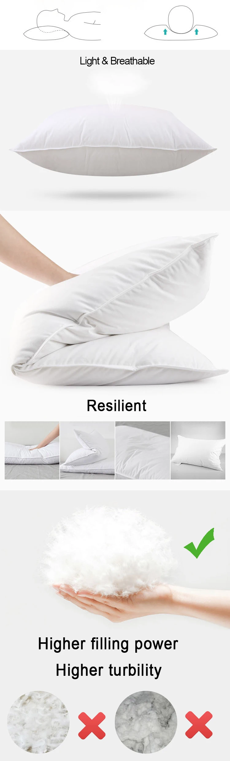 | Filling | hypoallergy treated 75% white duck down, 85% white duck down, 90% white duck down, 95% white duck down |