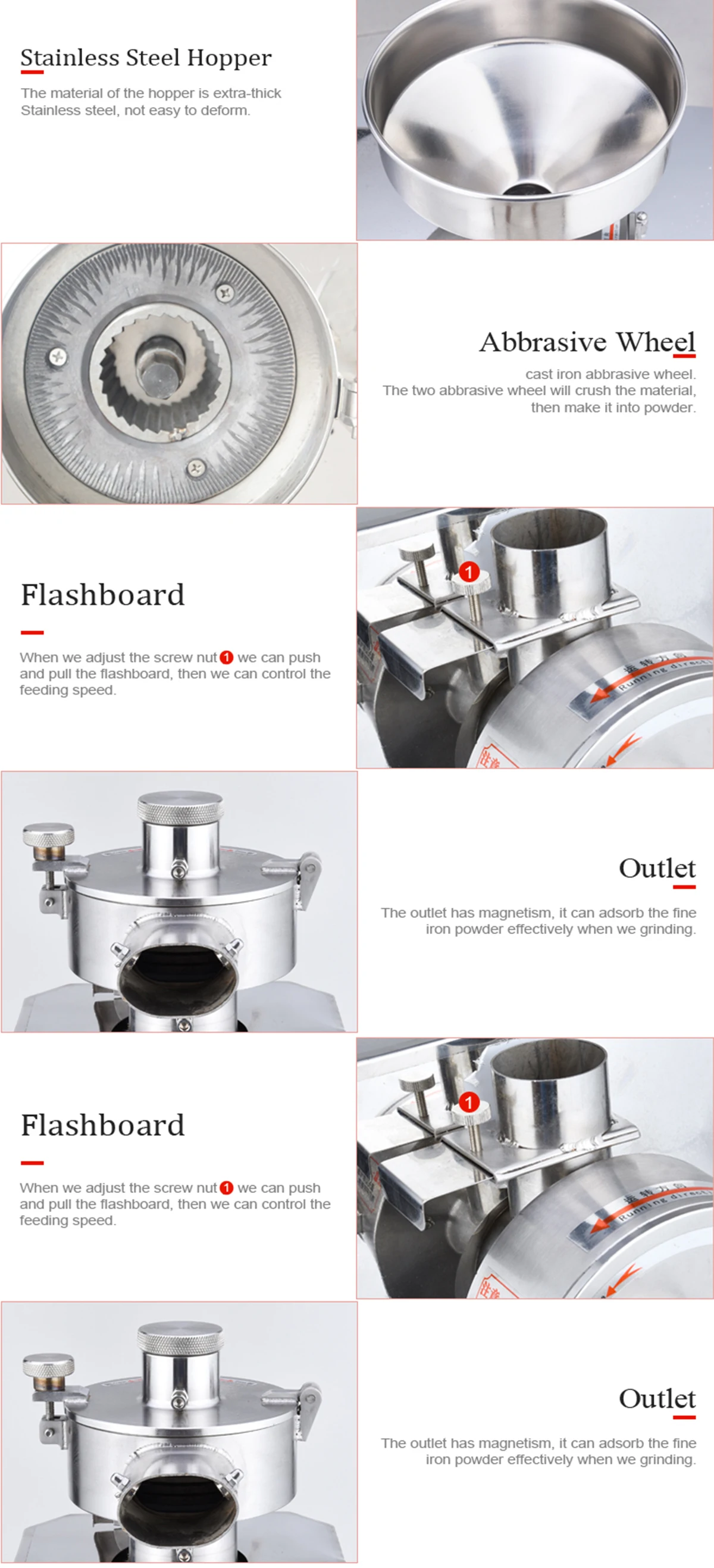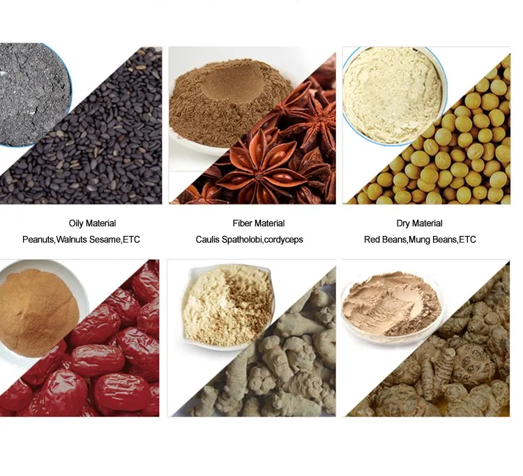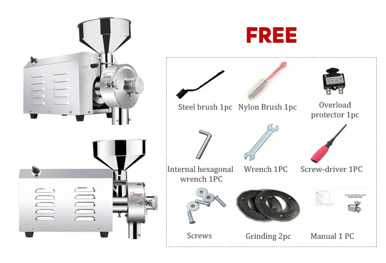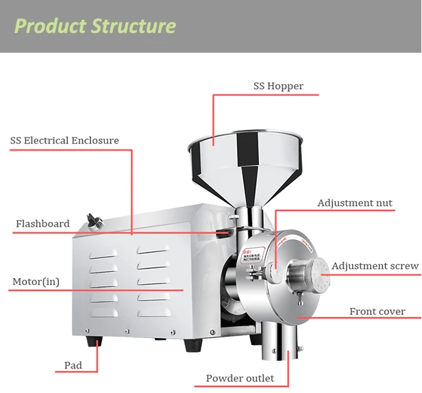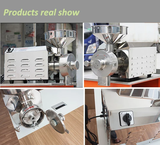 HDC grain milling machine,the machine adopts 304 stainless steel refining,directly driven by a motor shaft,can make the materials to achieve fast grinding in a short period of time,the powder outlet with a strong magnetic device,iron disc abrasion produced by adsorption during operation,to ensure the food safety and health,the machine with GMP standard.