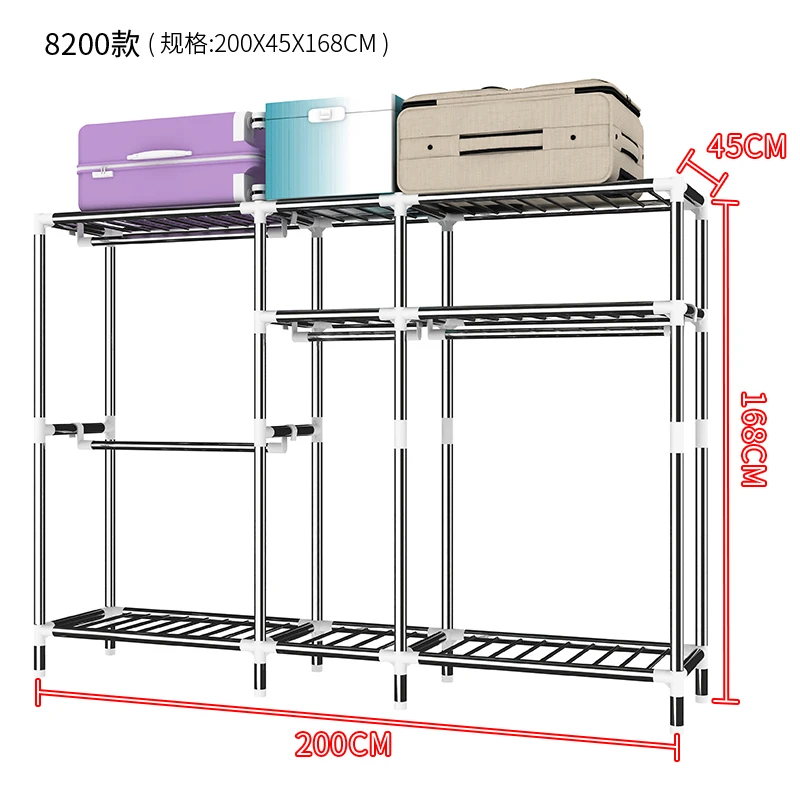 The frame is made of 25mm galvanized steel pipe with original PP material Adapter. The top, bottom and middle layers are all made of steel pipe. Therefore, our cloth wardrobe has a high load-bearing capacity. On the top, you can put suitcases, storage boxes and other idle items. In the middle compartment, you can place more clothes