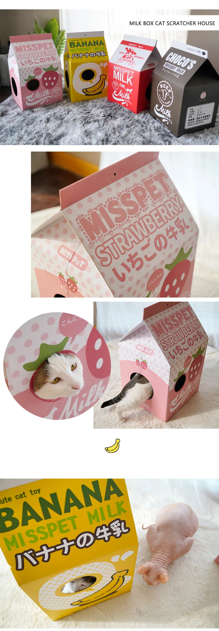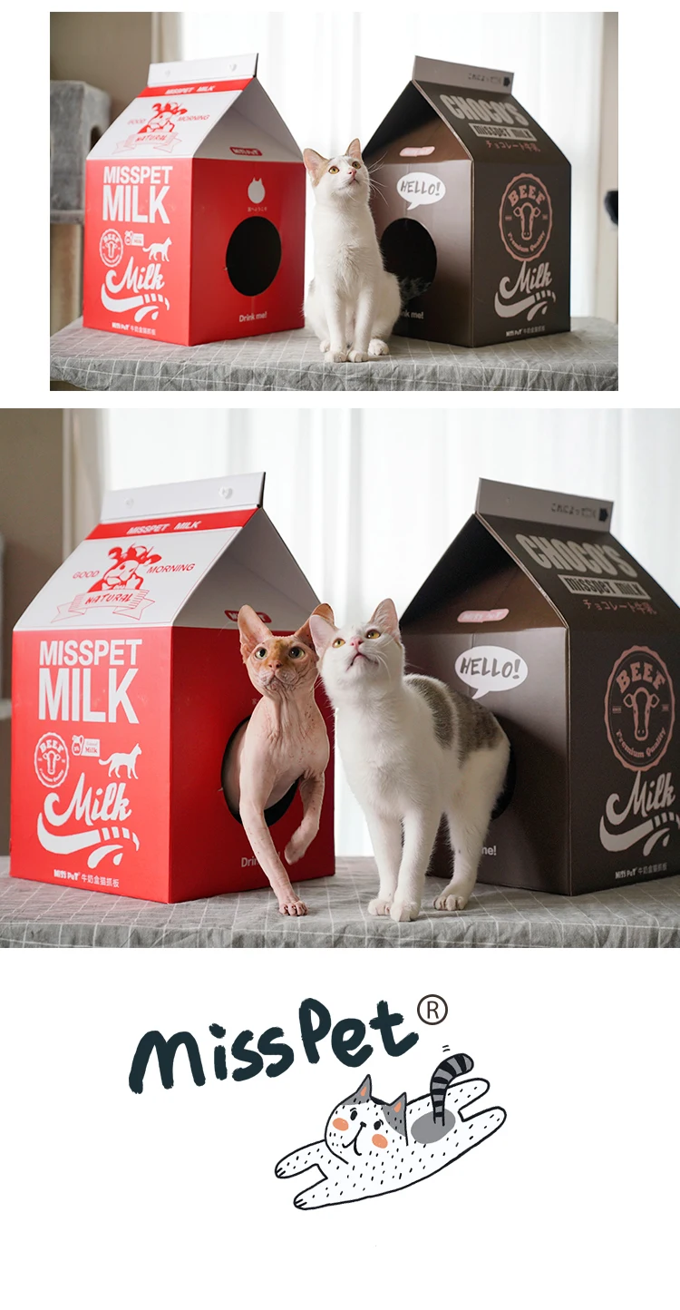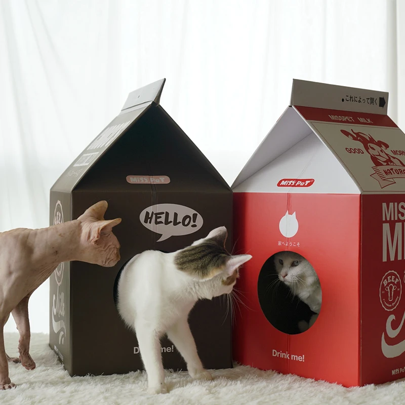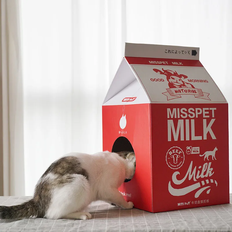 Milk Box Shape Corrugated Paper Cat Scratcher Toys Playing Lounge