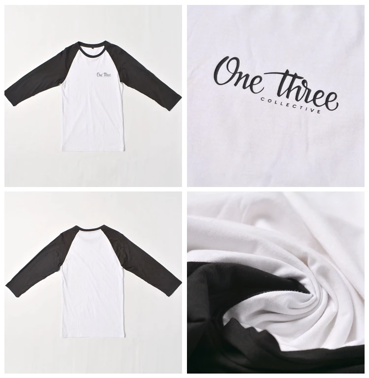 3/4 sleeves contrast color t shirt with screen printing design :