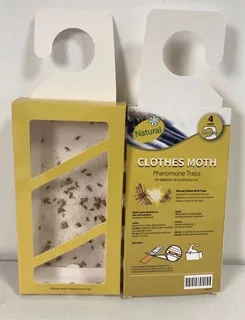 The pre-baited Cloth moth trap with special pheromone attractant in the glue board, males are attracted by the pheromone and trapped.This prevents them from reaching the female and breeding, and breaks the cloth moth life cycle. The traps are great tools for both monitoring and mass trapping.