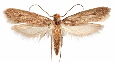 Tineola bisselliella, known as the common clothes moth, webbing clothes moth, or simply clothing moth, is a species of fungus moth.The larvae (caterpillars) of this moth are considered a serious pest, as they can derive nourishment from clothing – in particular wool, but many other natural fibers – and also, like most related species, from stored foods, such as grains.