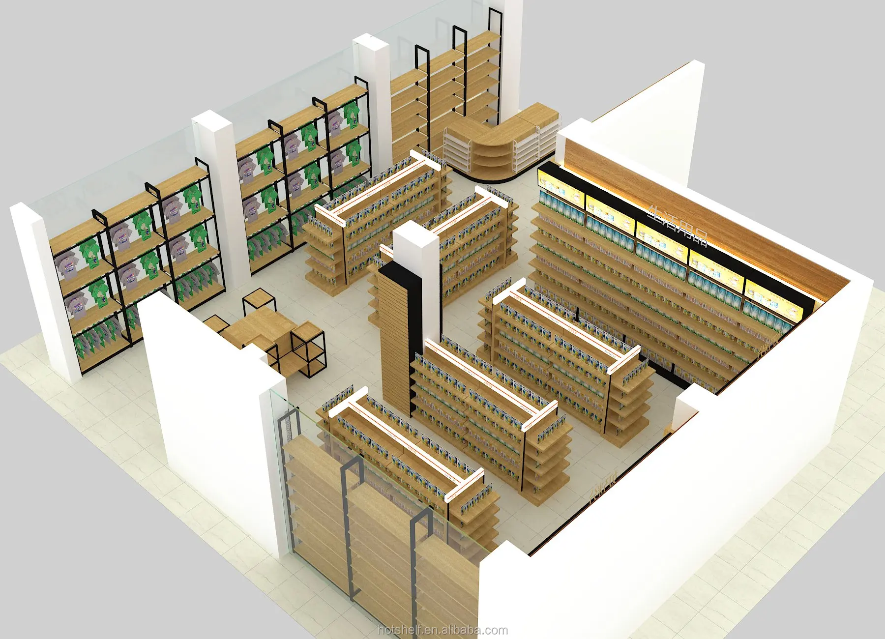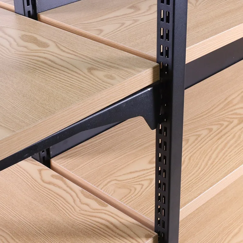 This kind of shelf is a simple modern Steel-wood shelf. It is a basic style with simple and generous style. It is suitable for many occasions: shopping malls, supermarkets, convenience stores, Department stores, wholesale, jewelry and gifts boutiques, mobile phone accessories stores, fishing gear stores, red hotels, pet stores, home textile stores, mother and baby stores, stationery stores, imported food stores, and so on. Cosmetics stores etc.