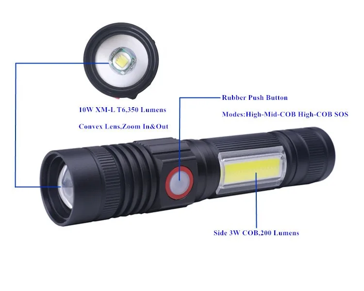 LED Source: | T6+Side COB | Material: | Aircraft Aluminum Alloy | |||