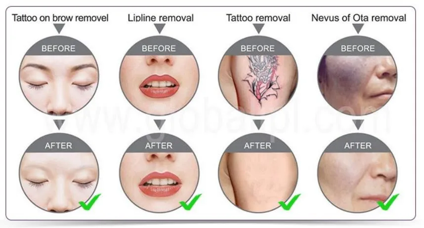 3. Tattoo removal: Remove black blue brown and colorful (such as red yellow green) tattoo on eyebrow eye line lip line and other parts of body