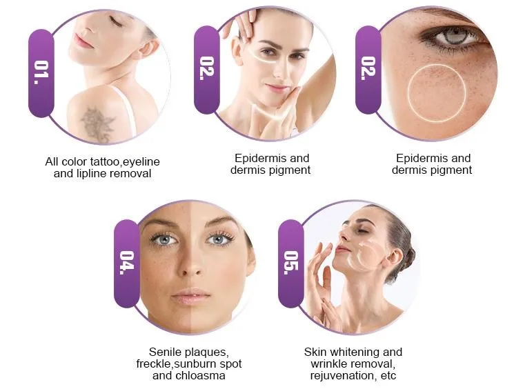 It can removal all kinds of pigment and tattoo effectively and safely, because picosecond laser use precise positioning of the target tissuetherapy to reduce damage to the skin to achieve the freckle effect.