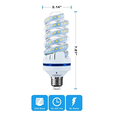 1. Energy savings: 30W LED light bulbs=250 watt incandescent light bulbs=60 Watt cfl light bulbs=60 Watt fluorescent light bulbs