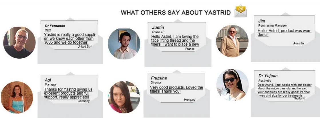 With the foundation of "Quality is our culture", Yastrid pays great attention to social responsibility with serious management and quality control, we gained good reputation and positive feedback for our face lifting thread and injjectable dermal filler from our customers all over the world.
