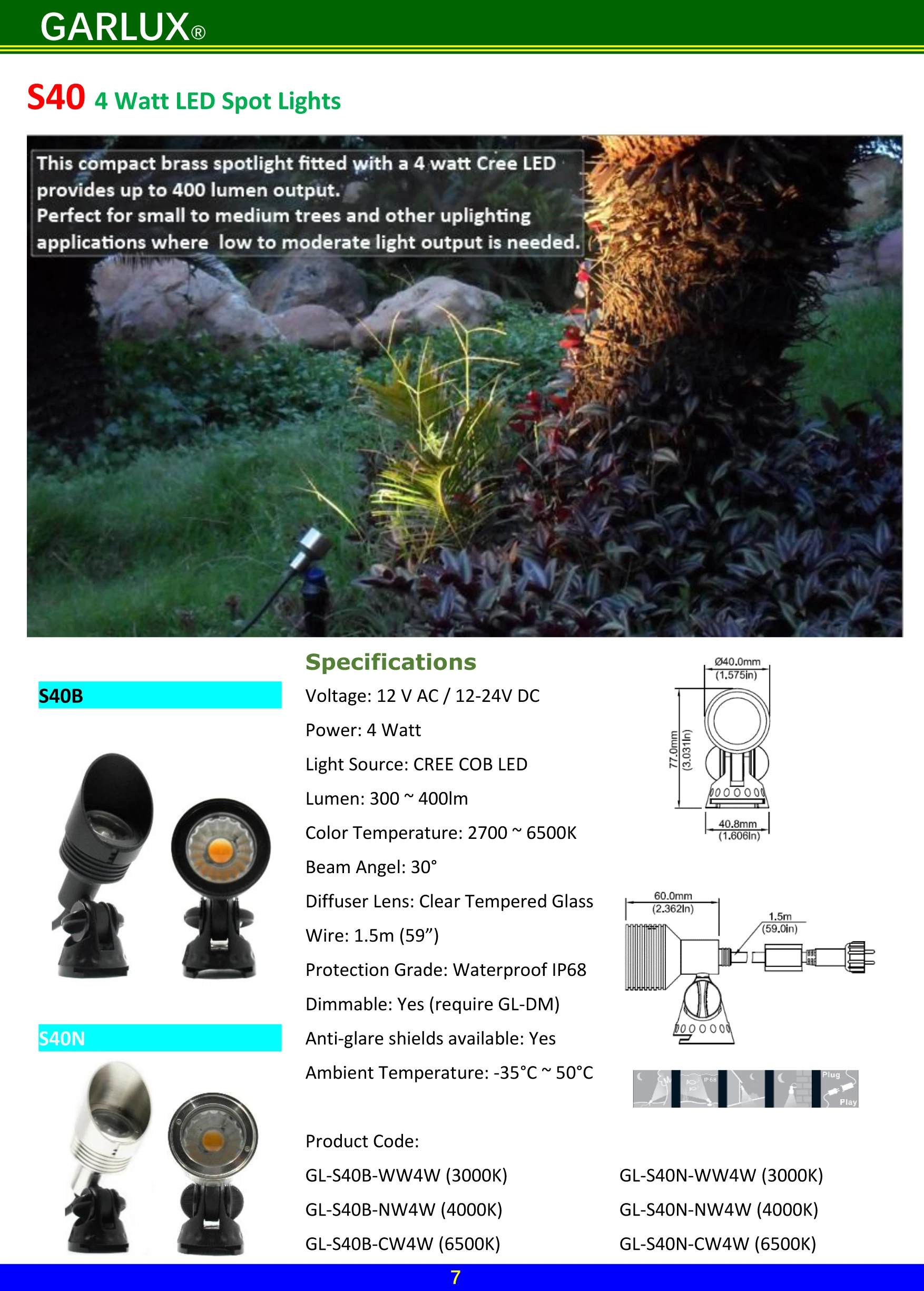 This compact brass spotlight fitted with a 4 watt Cree LED provides up to 400 lumen output