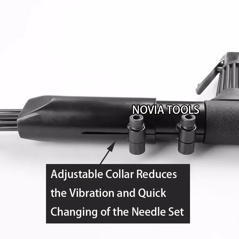 4)This heavy duty air needle scaler with adjustable Collar Reduces the Vibration and Quick Changing of the Needle Set.