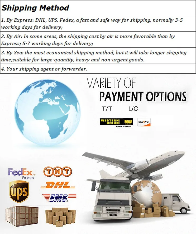 100 % before delivery with small quantities, Western Union etc.30% deposit and 70% against document with big quantities.