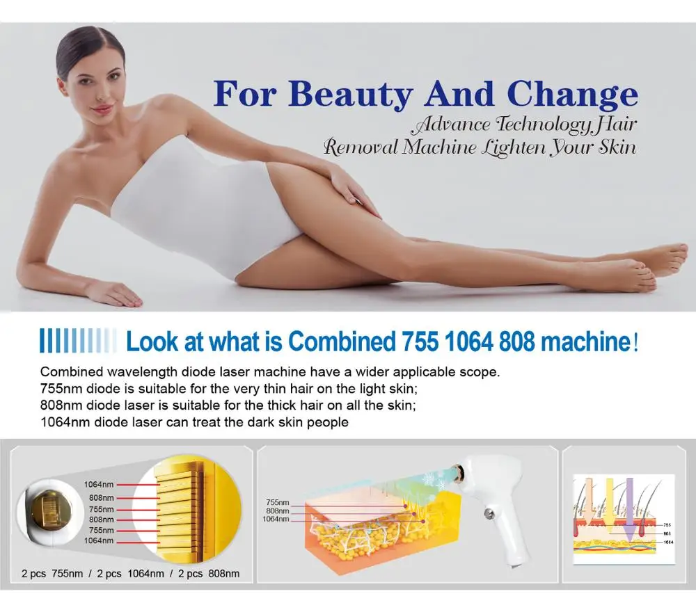 755nm wavelength special for light hair on white skin;