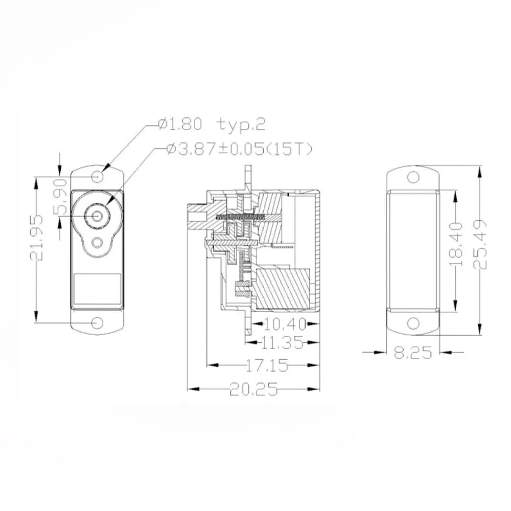 3.Torque: 2.8v 0.25kg / 6.0v 0.3kg