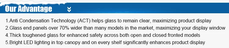 2.Anti Condensation Technology (ACT) helps glass to remain clear, maximizing product display.