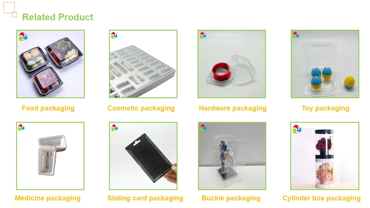 We main design and manufacture vacuum thermoform packaging, such as food container, cosmetic blister tray ,toy clamshell packaging, electronic packaging, etc.