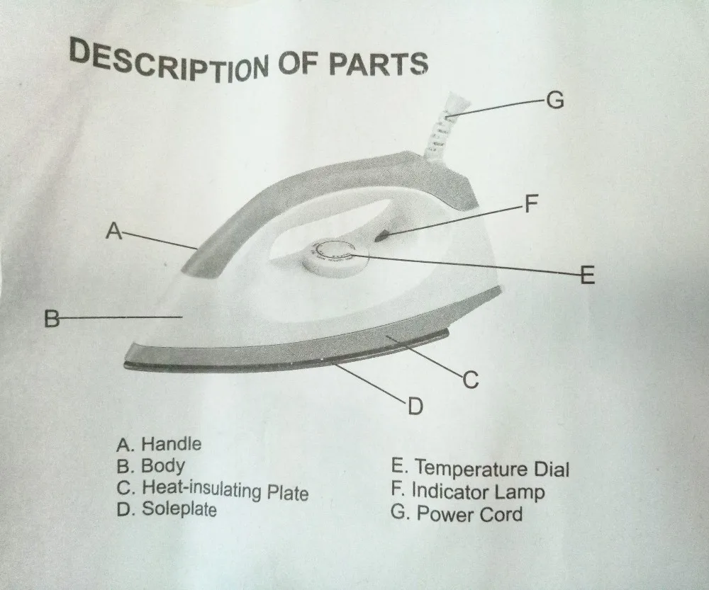 1. Classify the clothes according to the labels attached before use, speed of the iron-heating is quicker than its cooling, so beginning iron the clothes which requires a lower ironing temperature fist ( synthetic fiber and silk), and then iron the clothes of other materials requiring for higher temperature in proper order (woolen, cotton and linen etc. )