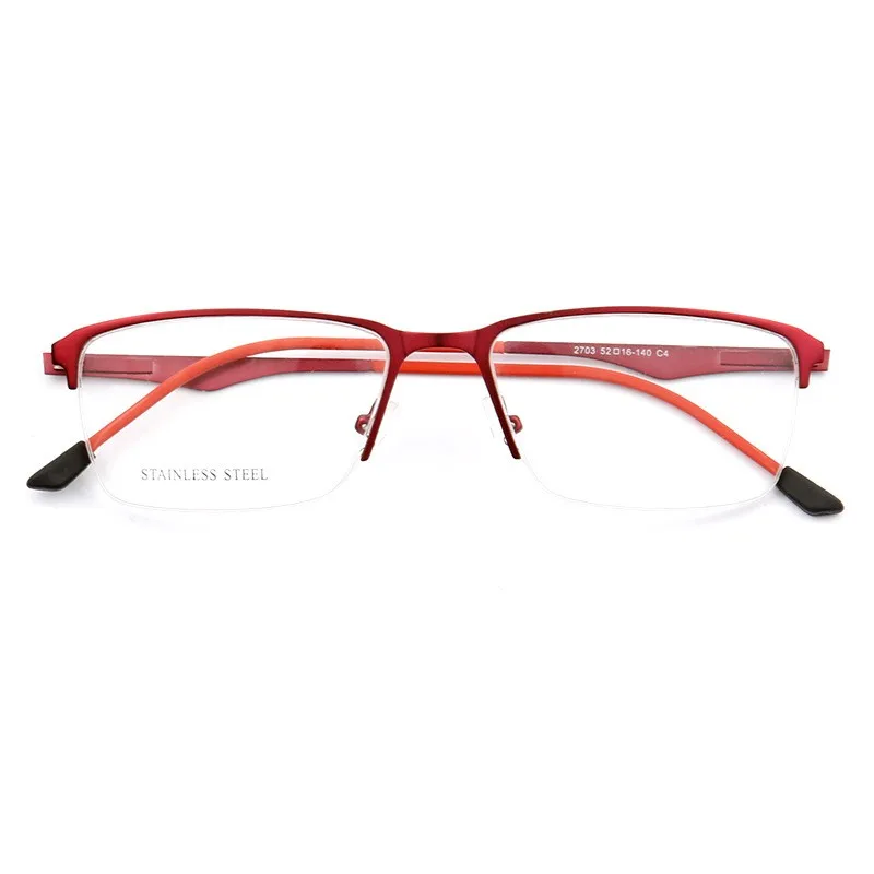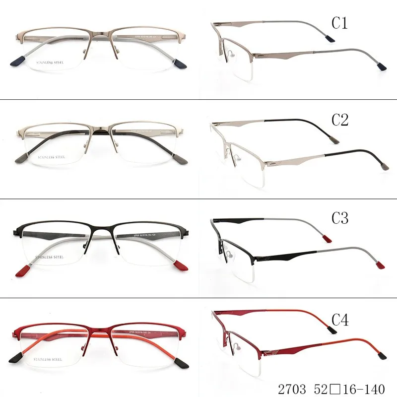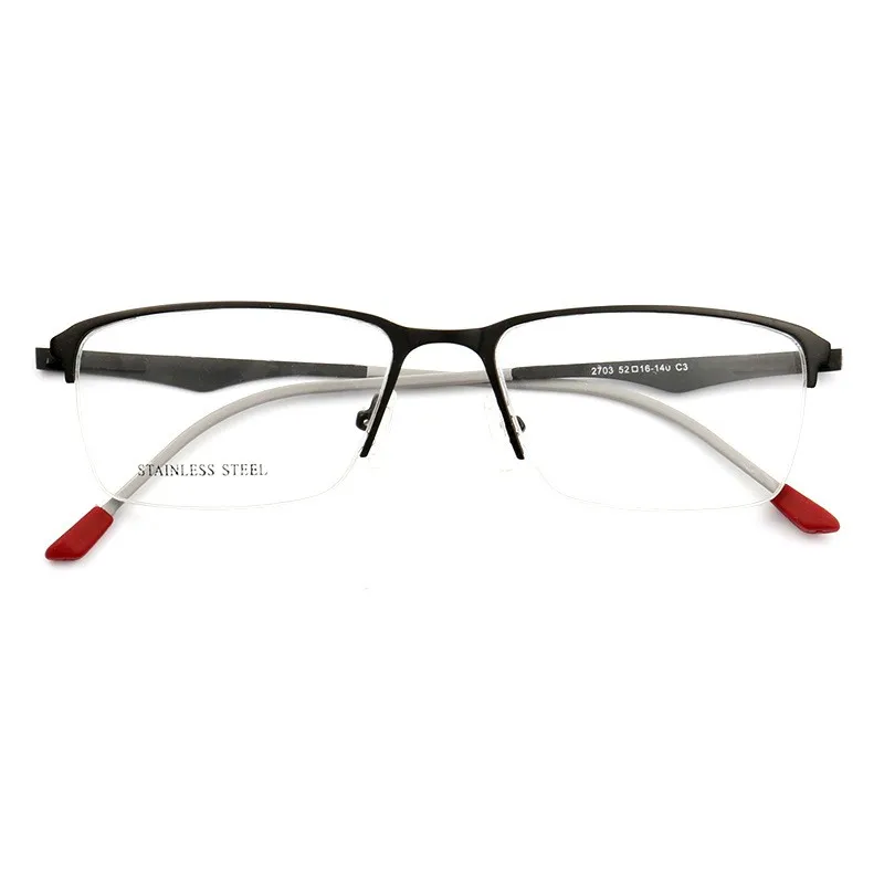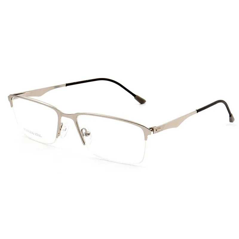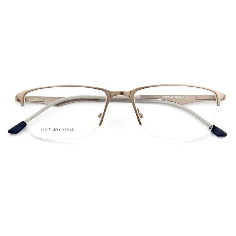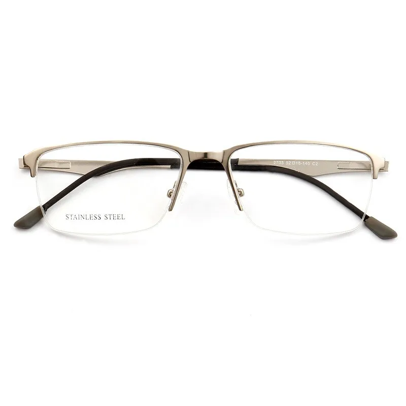Mens Square Eyebrow Metal Optical Frame with Demo Lenses Stainless Steel eyeglasses 2703