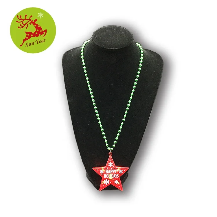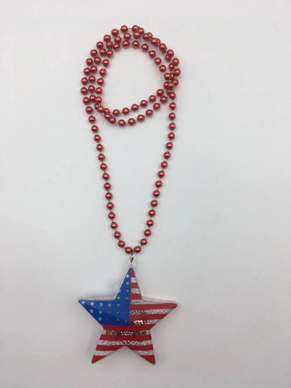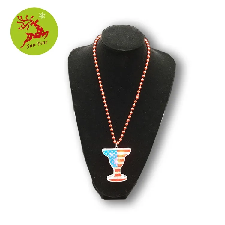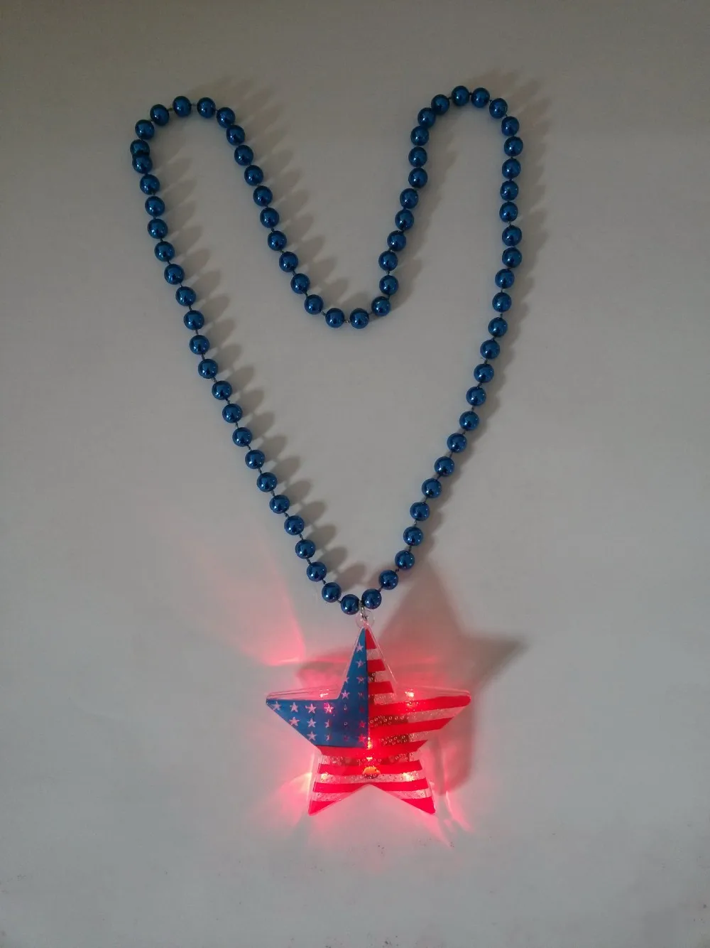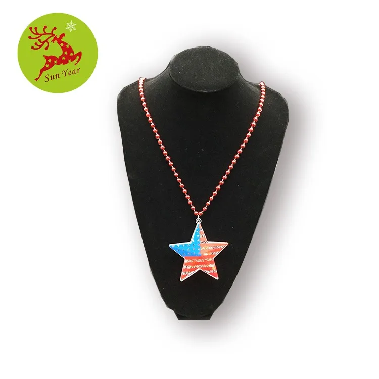 | America flag printed LED flashing star pendant with bead necklace | |
