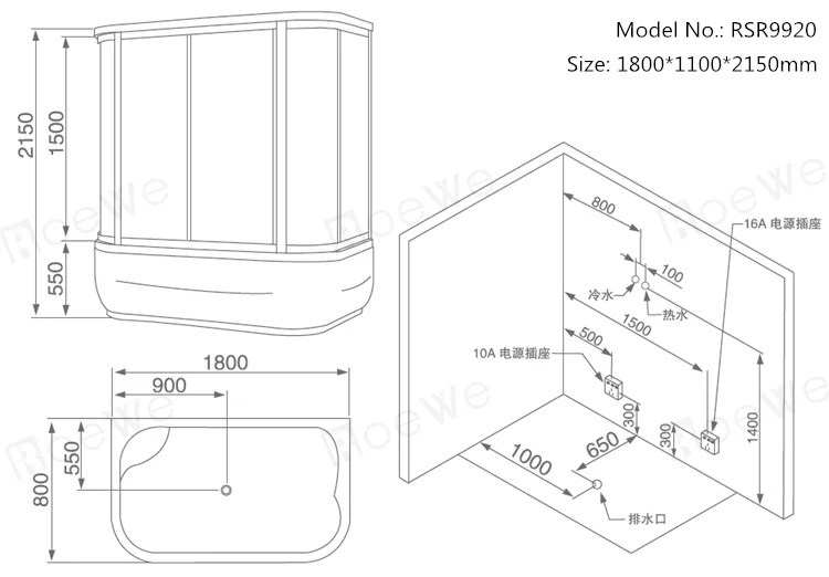 *Wet steam ( 2800w steam generator) | *Jacuzzi bathtub (1HP water pump) |