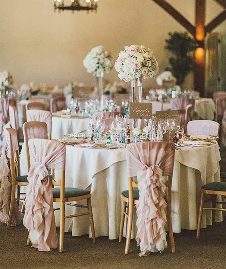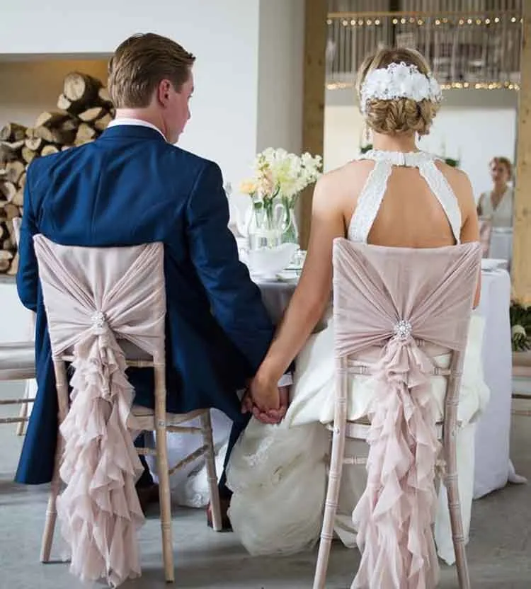 Chiffon Ruffle Chair Hoods with Brooch is beautiful for any occassion ,and suitable for all bouquet chairs
