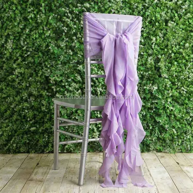 Violet Amethyst Chiffon Hoods With Ruffles Willow Chiffon Wedding Chair Sashes