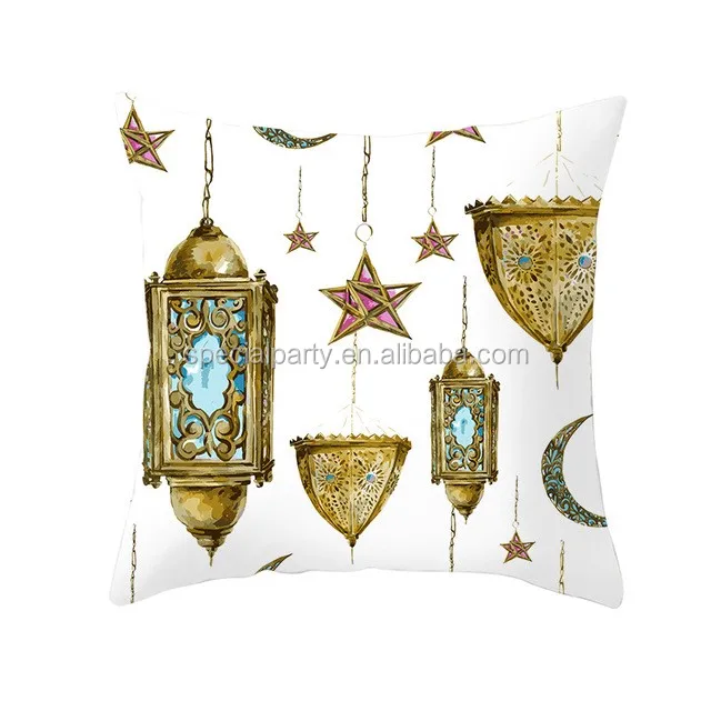 Peach Skin Islamic Pattern Cushion Cover Printed Decorative Pillow Case for Ramadan Gift EID Mubarak Ramadan Decoration Supplies