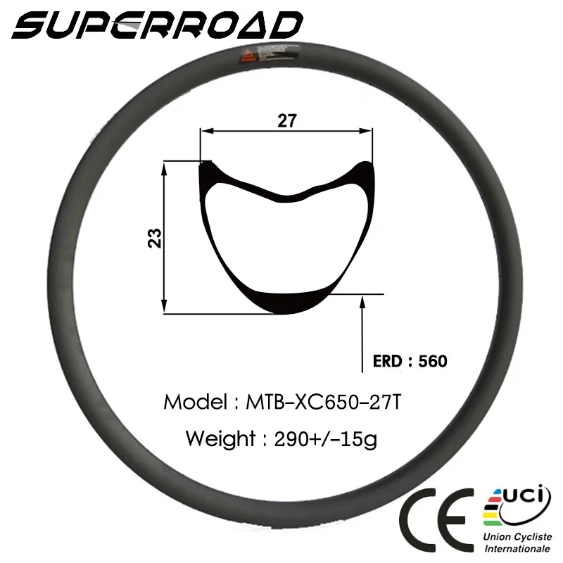 XC 27.5er Mountain Bicycle 27mm Wide 23mm Depth Tubular MTB Carbon Rims