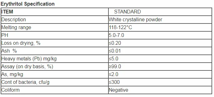 Erythritol characterizes low caloric ability, excellent biologic tolerance, good thermo-stability, bad accessibility, low ice point.