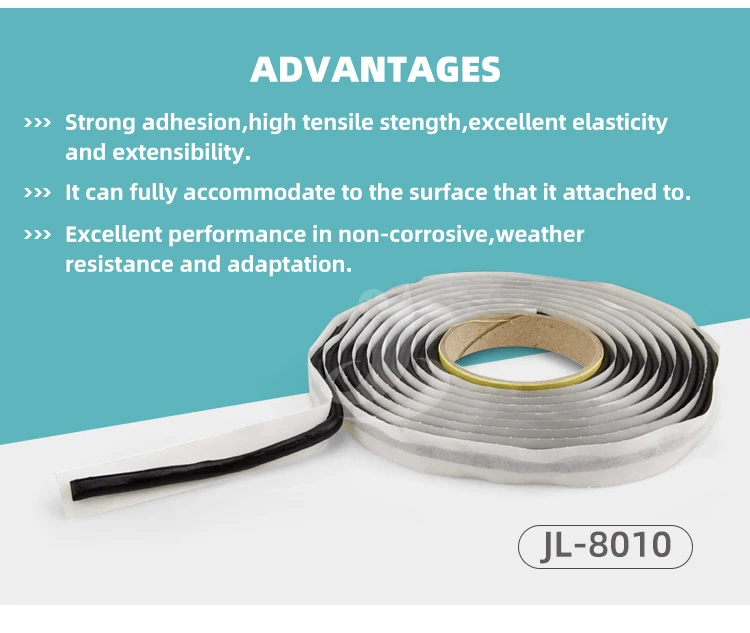 Adopting unique production technology,Juli-8100 butyl tapes are mainly made of butyl rubber supplemented by other auxiliaries and fillers,with the superior high polymer materials. With its strong adhesion property and air-tight property,our waterproof sealing butyl tapes are environmental and solvent-free.