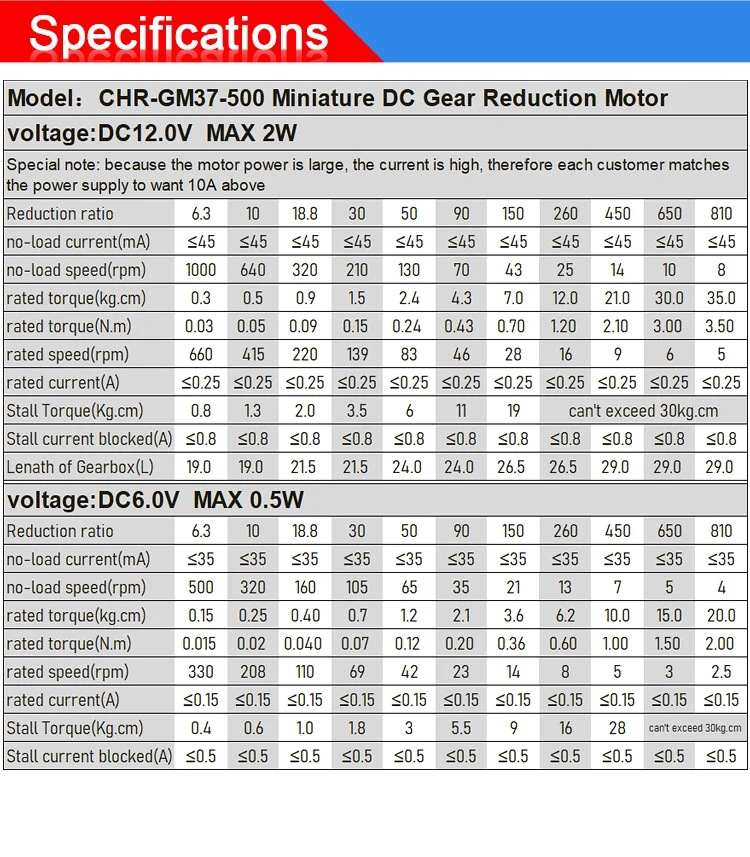 Product Type: | CHR-GM37-500 micro dc gear motor | ||||||