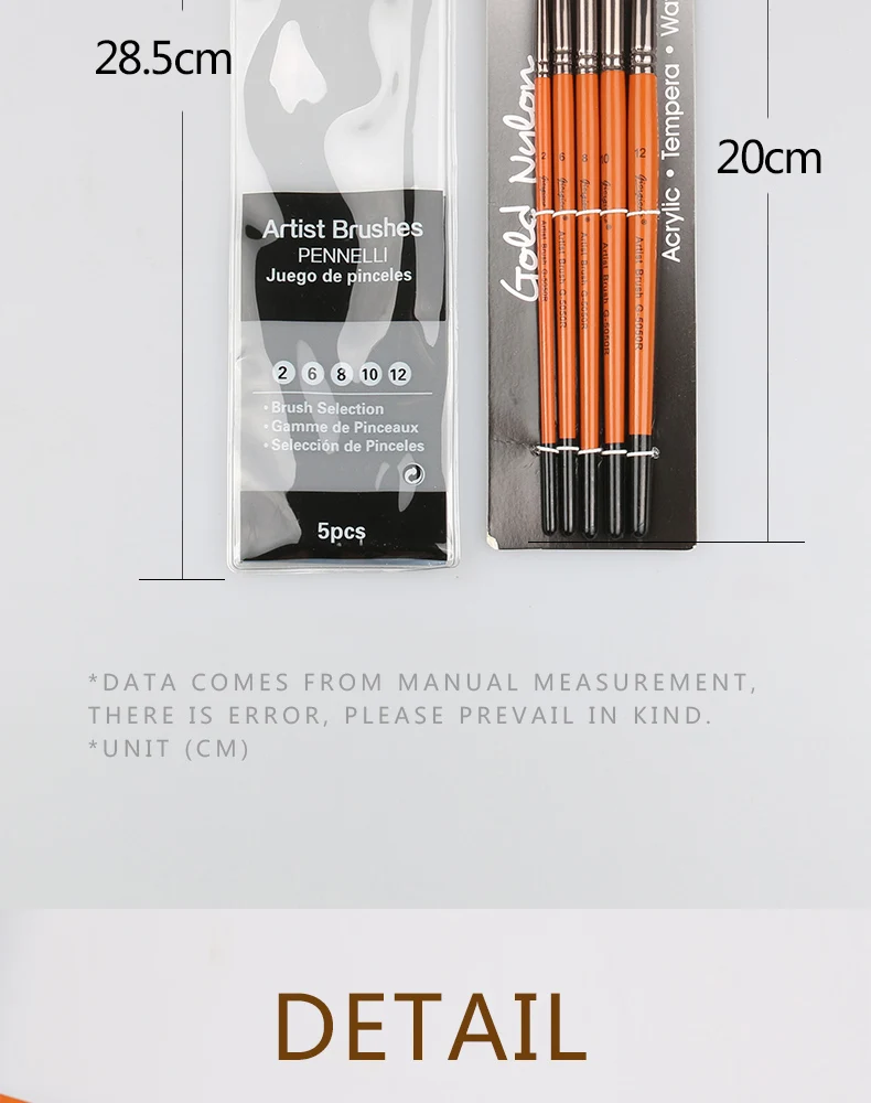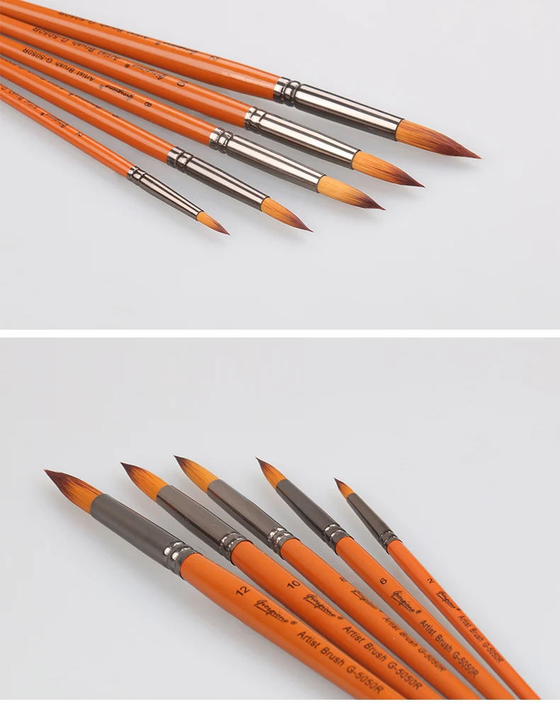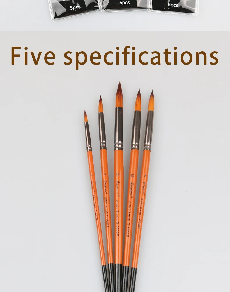 Giorgione 5 Pieces Round Shape Nylon Hair Wooden Handle Artist Acrylic Oil Watercolor Drawing Paintbrush | ||||||
