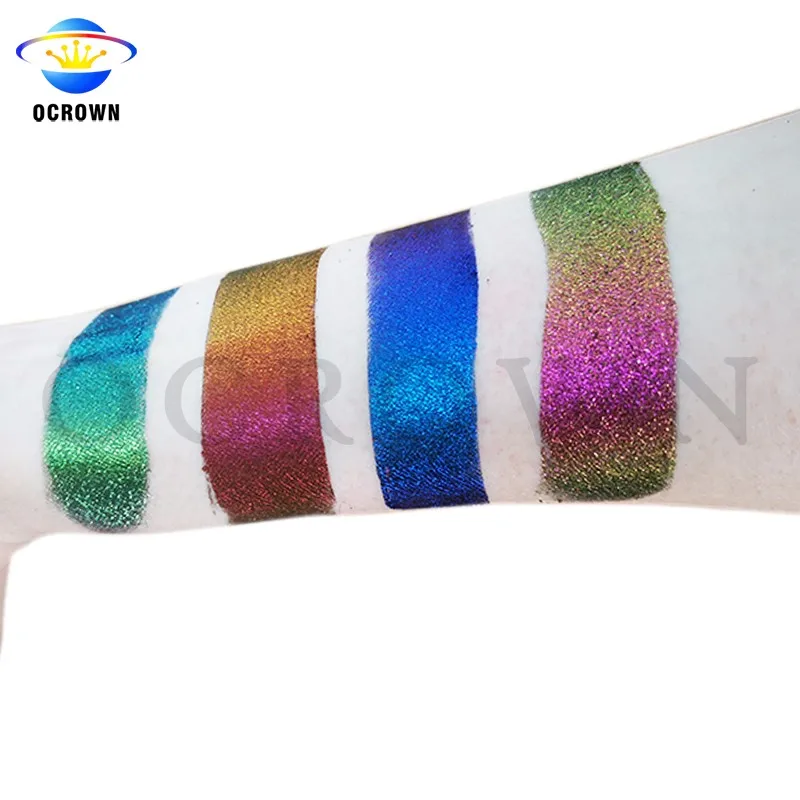 We OCROWN have not only the chameleon color shift pigment, but also many other pigments, such as holographic pigment, glow in the dark pigment, thermochromic pigment etc., which are all well used for both cosmetics and industry applications.