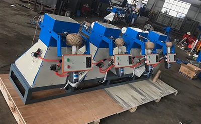 The ball making machine is matched with weight counter witch can wind several twine ball at the same time. Therefore, the machine output is increased and labor is saved. This machine is suitable for winding various of long fabric such as tearing film, net shape yarn, plastic rope, hemp rope, cotton thread, etc. It can also be justabled to make ball with cylinder, sphere, olive shape and column shape.