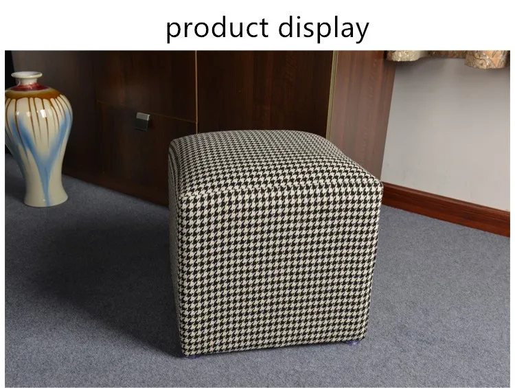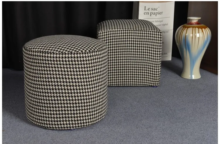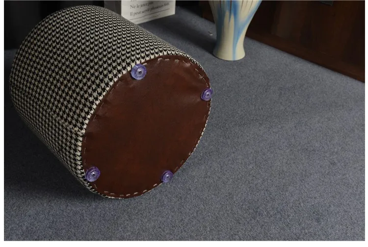 Premium quality comfort footstool solid wood cloth art round stool upholstered ottoman