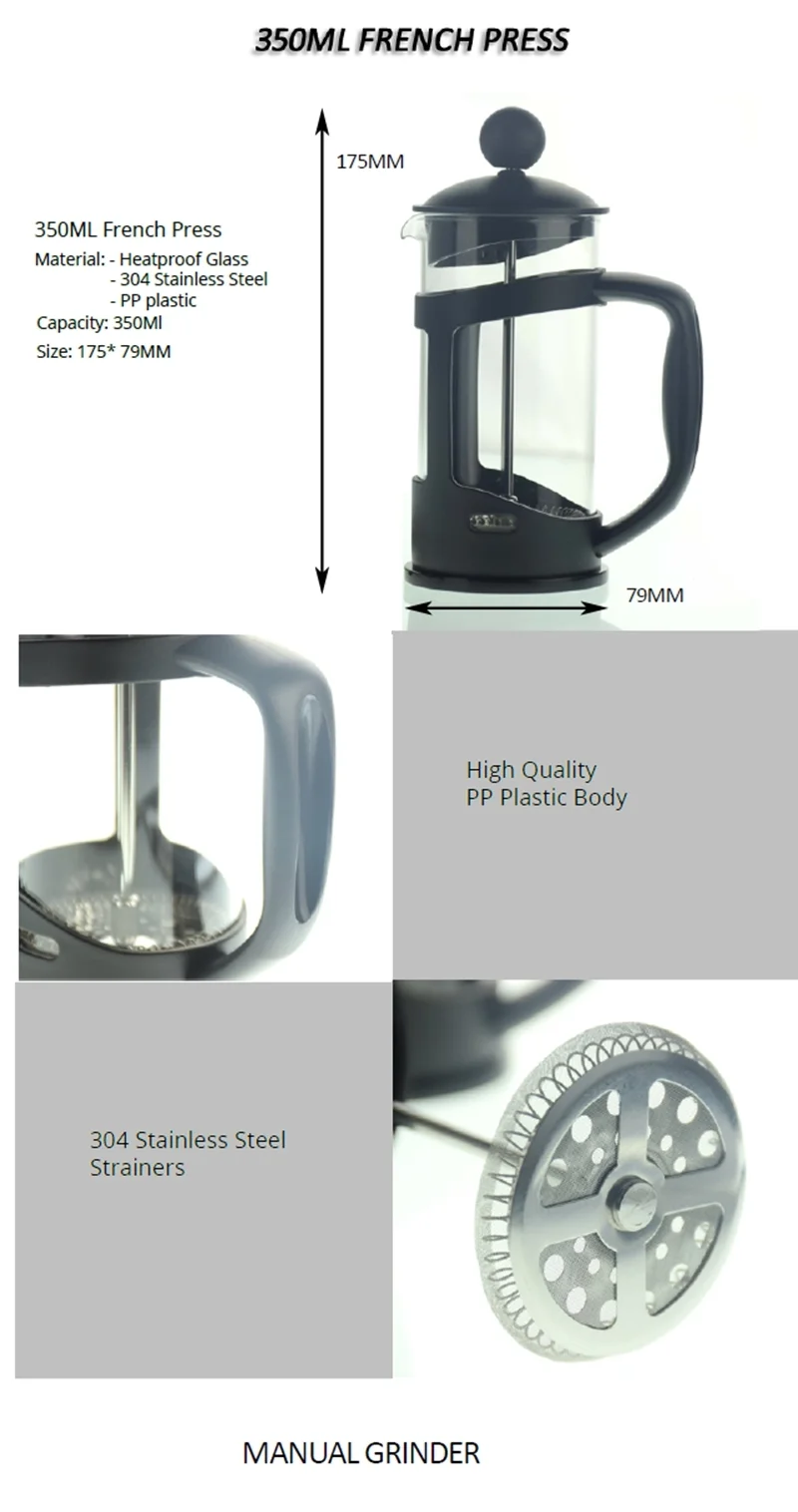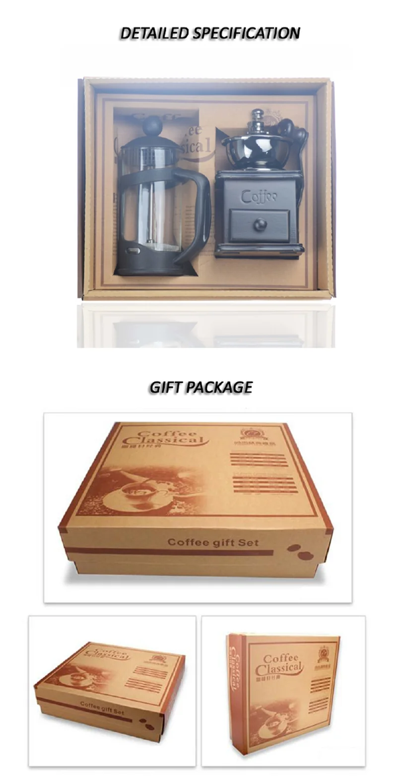 Ecocoffee Accessories Coffee Press Hot Sale Coffee Maker Grinder French Press Gift Box Coffee Set